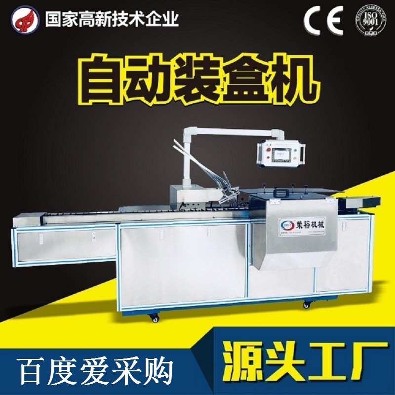 智能装盒机RY-ZH-80是我公司研制的新产品,应用范围广,效率高,运行稳定,可一机多用,适用于各行业产品的包装,其性能特点如下: