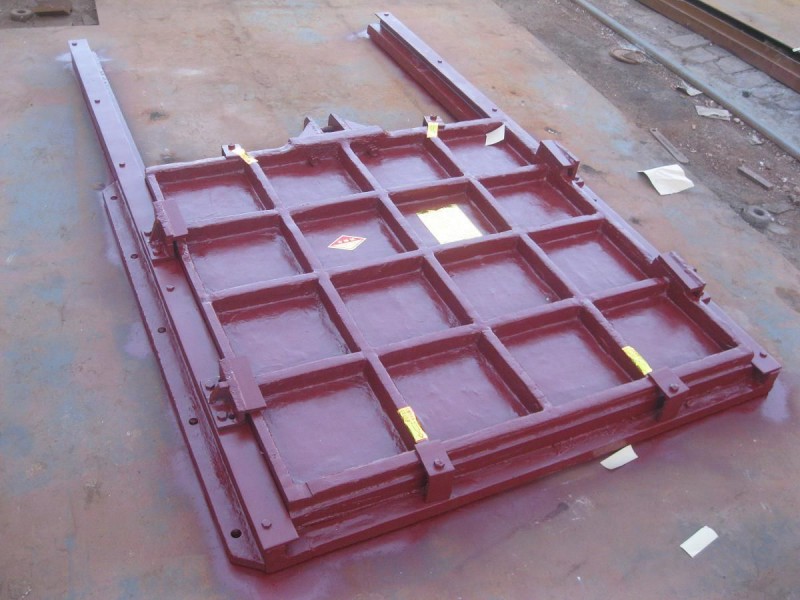 门体、门框由灰口铸铁(或球墨铸铁)制成,经过内应力消除,无变形。根据用户要求,止水面可采用镶铜或镶不锈钢等耐蚀材料精密加工制造。也可采用橡胶封水。