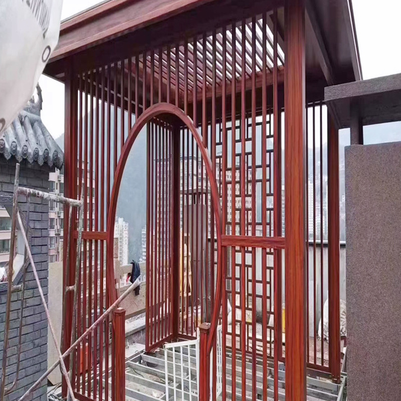 中式仿古木纹铝窗花铝合金格栅焊接护栏窗花铝合金窗花定制厂家