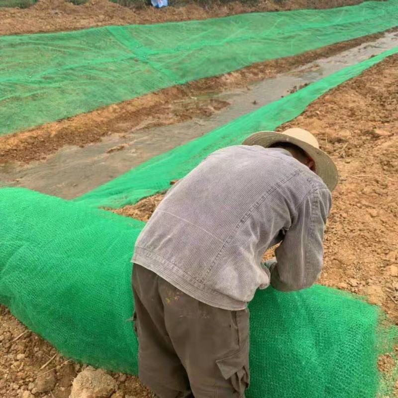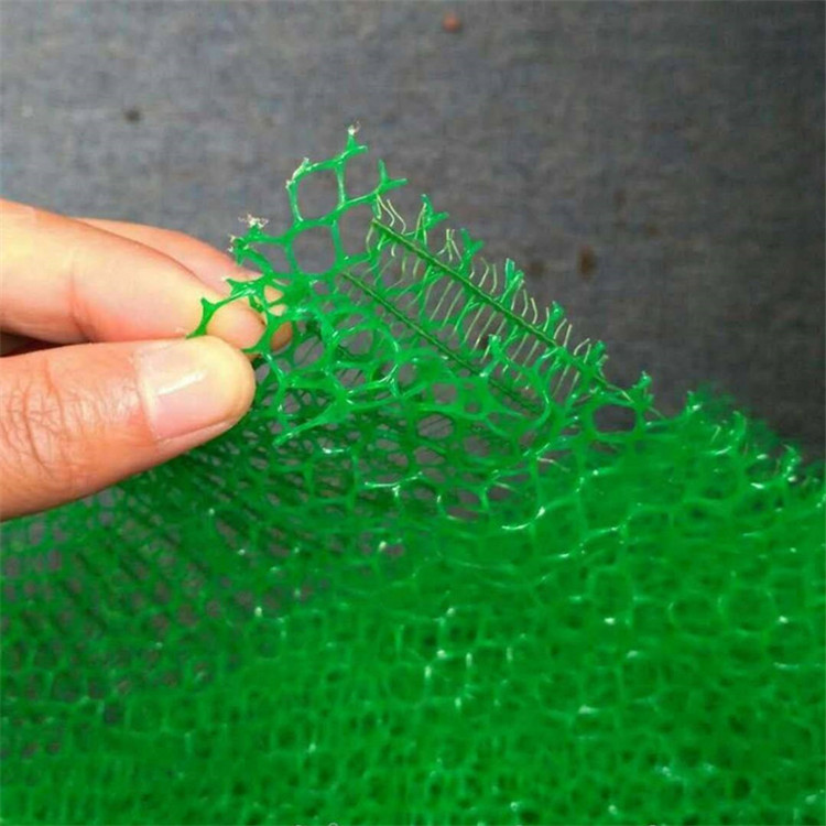 三维植被网又名三维土工网垫是一种三维结构的适用于水土保持的新型土工合成材料,它是以热塑性树脂为原料,经挤出成网、拉伸、点焊复合等工序而成的表面呈凹凸泡状的多层塑料三维结构网垫,可有效的防止水土流失增加绿化面积,改善生态环境。它的底层为一高膜量基础层,能防止变形和水土流失,表层为起泡层,填入土壤,种上草籽,是非常理想的土壤植被防护材料。用于公路,铁路,河道的护坡。