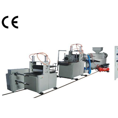 pvc热收缩膜吹膜机组采用了旋转模头、变频调速及自动恒温控制等项技术,生产出来的产品塑化好、薄膜的厚薄均匀度、透明度、平整度、收缩率等各项质量指标达到印刷级薄膜的技术标准。 该机组机构紧凑,操作容易,主要由如下部分组成:挤出机、旋转模头、冷却风环、第一牵引、热水箱及定型套、第二牵引(可电动升降)、双工位收卷机、挤出机电控柜和辅机电控柜.