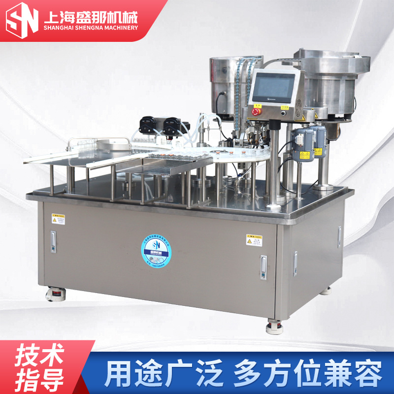 盛那牌全自动西林瓶透明液体近视镜灌装轧盖机