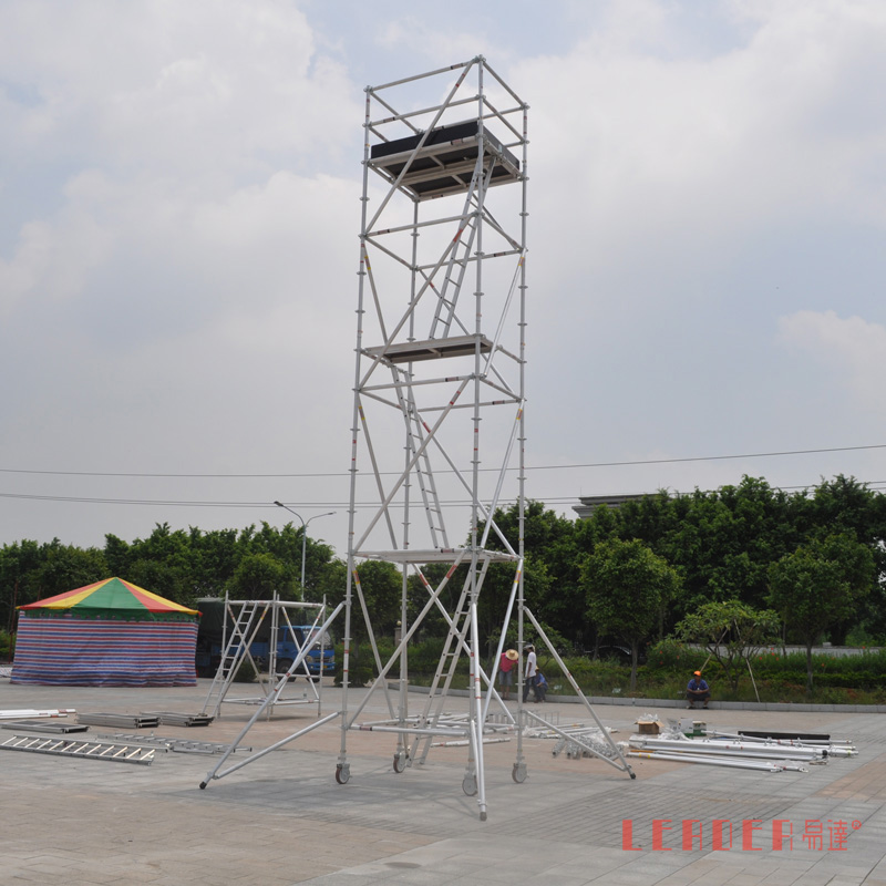 礼堂灯饰维修工作架 组合式圆盘铝架 安全可靠 艺达工厂物流直达 固定盘扣式检修平台铝架采用平脚垫,一般放置不动。搭建快捷方便,使用安全可靠