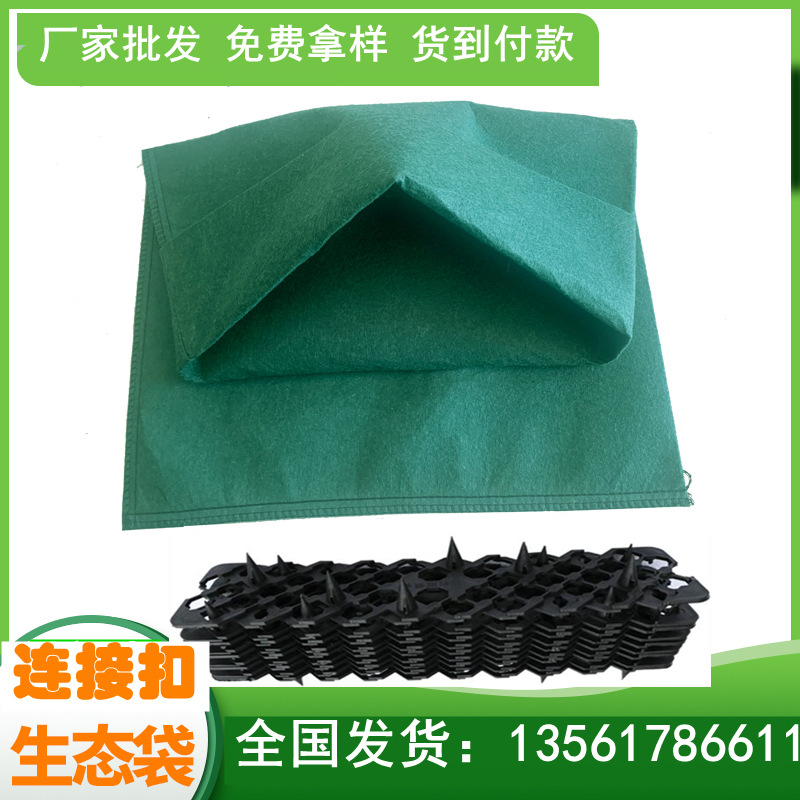 柔性生态袋在充分考虑材料力学、水利学、生物学、植物学等诸多学科要求的前提下,对生态袋的厚度、单位质量、物理力学性能、外形、纤维类型、受力方式、方向、几何尺寸和透水性能及满足植物生长的等效孔径等指标进行了严格的筛选,具有抗紫外(UV)、抗老化、无毒、不助燃、裂口不延伸的特点。柔性生态袋具有目标性透水不透土的过滤功能,既能防止填充物(土壤和营养成分混合物)流失,又能实现水分在土壤中的正常交流,植物生长所需的水分得到了有效的保持和及时的补充,对植物非常友善,使植物穿过袋体自由生长。根系进入工程基础土壤中,如无数根锚杆完成了袋体与主体间的再次稳固作用,时间越长,越加牢固,更进一步实现了建造稳定性边坡的目的,大大降低了维护费用。