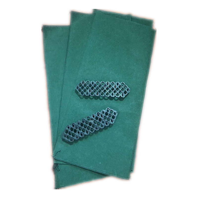柔性生态袋在充分考虑材料力学、水利学、生物学、植物学等诸多学科要求的前提下,对生态袋的厚度、单位质量、物理力学性能、外形、纤维类型、受力方式、方向、几何尺寸和透水性能及满足植物生长的等效孔径等指标进行了严格的筛选,具有抗紫外(UV)、抗老化、无毒、不助燃、裂口不延伸的特点。柔性生态袋具有目标性透水不透土的过滤功能,既能防止填充物(土壤和营养成分混合物)流失,又能实现水分在土壤中的正常交流,植物生长所需的水分得到了有效的保持和及时的补充,对植物非常友善,使植物穿过袋体自由生长。根系进入工程基础土壤中,如无数根锚杆完成了袋体与主体间的再次稳固作用,时间越长,越加牢固,更进一步实现了建造稳定性边坡的目的,大大降低了维护费用。