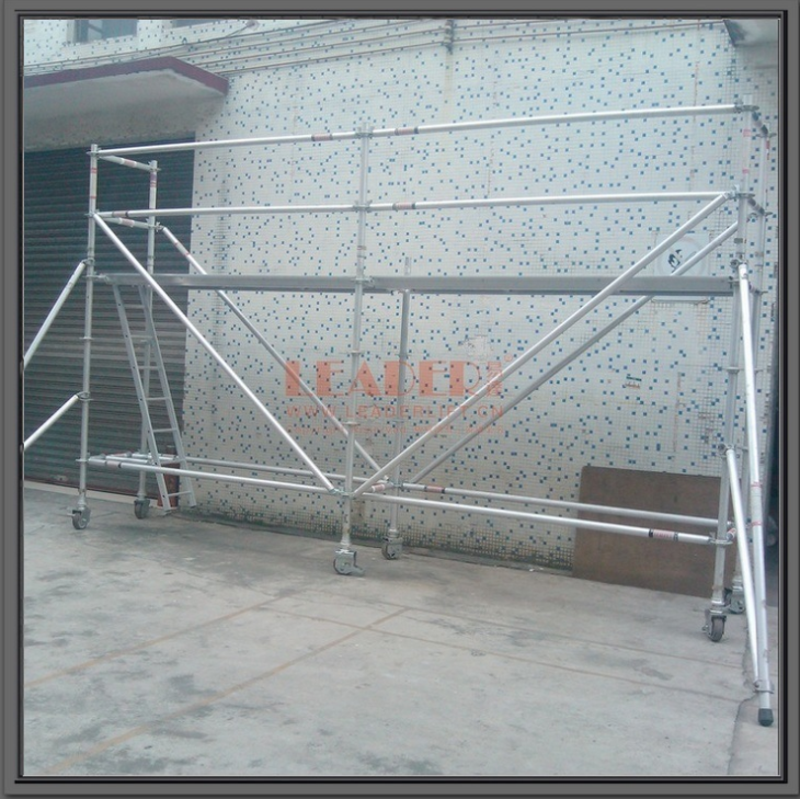 由梯架、横向连接杆和斜拉连接杆,以及支撑杆加绝缘平台板组合搭建而成;绝缘脚手架(平台)搭建快捷,拆装简单,无须任何安装工具,整体无金属结构,具有耐腐蚀、抗老化、使用方便、安全程度高、绝缘性能强等特点,适用于多种带电施工场所和高空带电作业,弥补了绝缘斗臂车不能进场施工的不足。