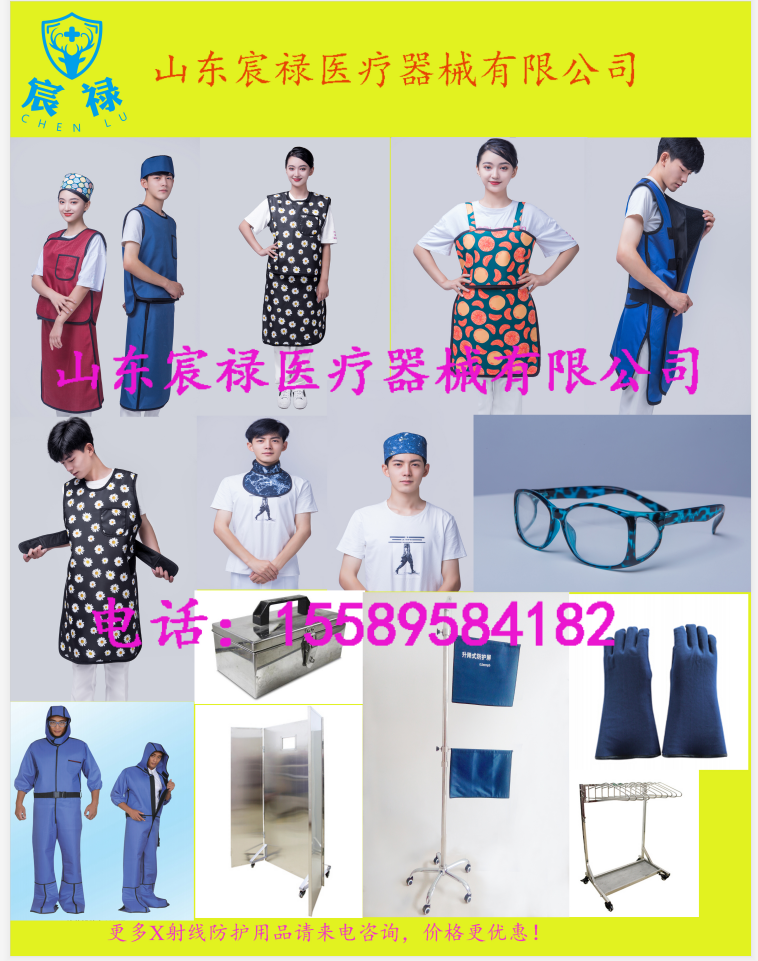 本公司生产X射线防护用品,主要有无铅防护服、射线防护服、铅胶帽、铅围脖、铅手套、铅眼镜、铅围裙、患者套装、儿童防护套装、铅屏风、铅衣架、铅胶皮.......,也可根据客户要求加工,更多防护用品请来电咨询,价格更优惠!15589584182(微信同号)