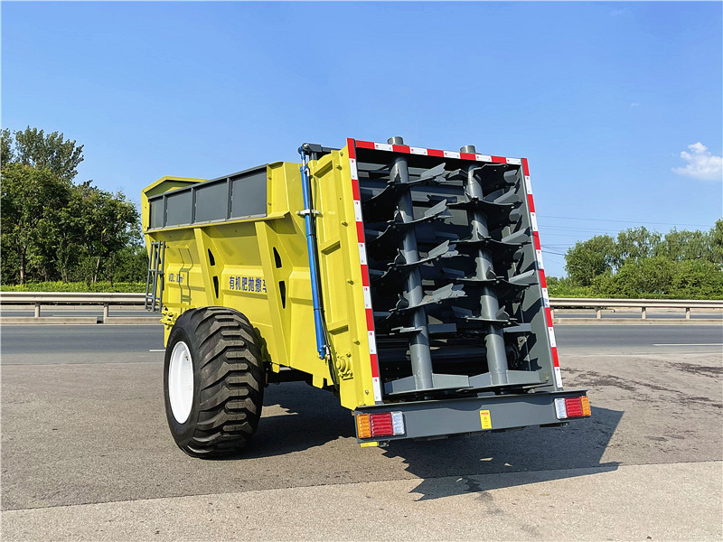 1、绞龙叶片采用NM耐磨钢板,更耐磨、使用更持久。双竖绞龙可粉碎块状粪肥,干湿粪肥皆可抛撒均匀。