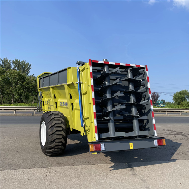 1、绞龙叶片采用NM耐磨钢板,更耐磨、使用更持久。双竖绞龙可粉碎块状粪肥,干湿粪肥皆可抛撒均匀。