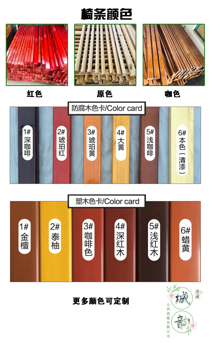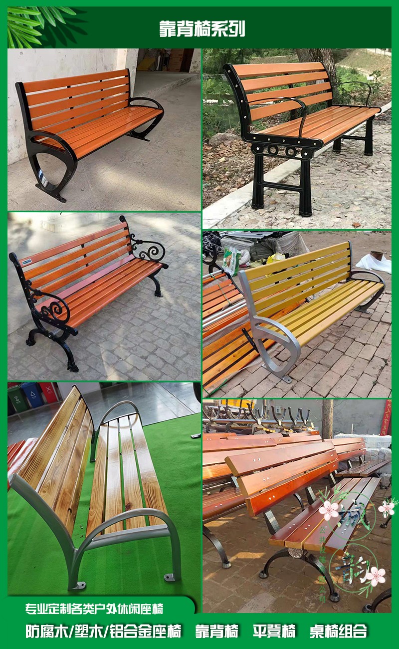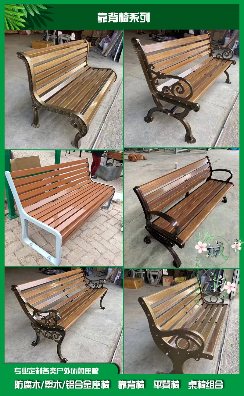 公园椅的椅条部分主要有木质椅条,防腐木椅条,木塑椅条。