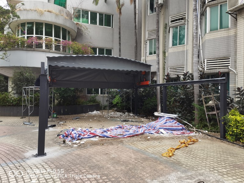 推拉雨棚户外遮阳棚的用途装饰美观:户外遮阳棚因为是供宣传使用的,所以一般的篷房的设计都是比较大方美观的,这种美观的效果对于我们日常的宣传和装饰有很好的效果。(2)遮阳布要坚韧耐用:遮阳布要柔韧、坚固、耐用,然而使用聚纶纤维织的遮阳布是适宜的,不易破损或脱离支架,且色牢性强,就算多经风雪的洗礼也不容易褪色。(3)必须具备有效疏导压力的整体结构:雨雪天气会对遮阳蓬产生很强的,若没有可疏导压力的结构,就算再牢固的遮阳篷也经不起时间的考验,因此一味追求密封性也并不好。可选用有导雨槽的遮阳篷,这样就不用怕雨水,当冰雪融化时也能有效排水。(4)要有伸缩自如的整体设计:理想的遮阳篷应该是在炎热夏天可大面积伸展,能有效避免阳光直射入屋内;在寒冷的冬天则可收缩至小、紧密的状态,以更好的保护“自己”。于是这也就对整体设计提出了要求,建议采用曲臂技术强的外置式气压杆,可轻松完成伸缩过程,且伸缩幅度大,真正做到了“能屈能伸”。(5)要有能够灵活转动的倾斜角度:若遮阳篷的倾斜角度小。