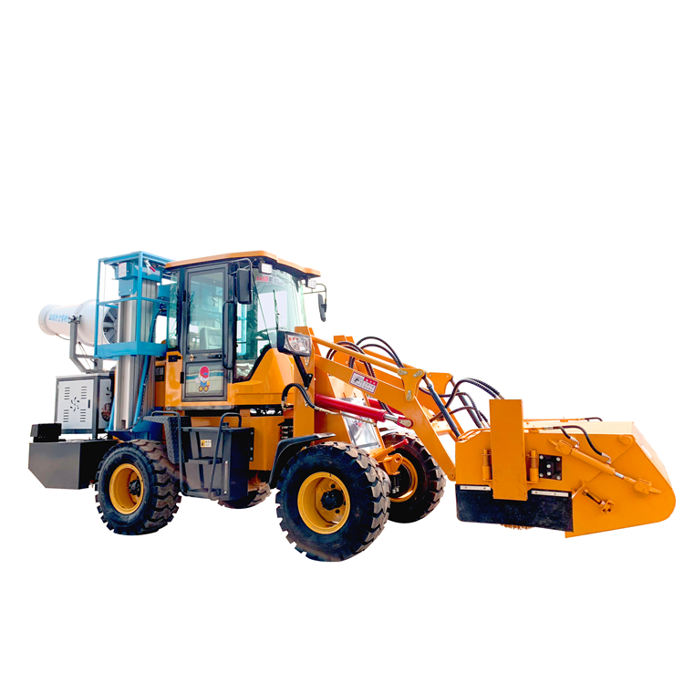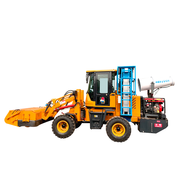 6、多功能路面清扫车:主机和清扫器之间设计有摘挂装置,还可方便装配推,叉,铲,抓,钻等器具,实现推雪,扫雪,推土,叉车,装载,抓货,钻孔等,一机多用。