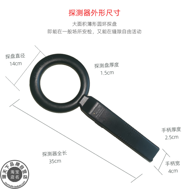 外形尺寸: 长350×宽140(探测环直径)×高30 mm