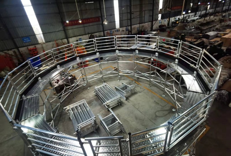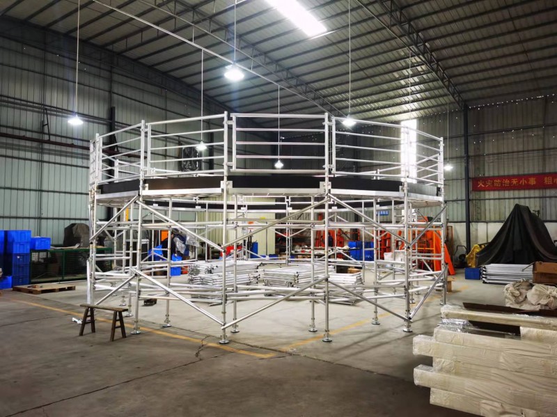 属于脚手架系类产品,由铝合金材料6082-T6型材(又名航天铝型材料)通过加工、技术制造用于各项高空作业平台使用的脚手架系类产 品。常见的铝合金脚手架有焊接框结构铝合金脚手架、盘扣插销式铝合金脚手架、十字式铝合金脚手架、单管式铝合金脚手架。