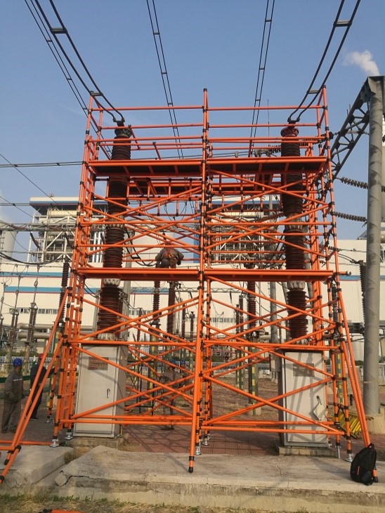 一般绝缘脚手架(平台)主体结构选用的是玻璃纤维和环氧树脂(EP)制作成的高强度绝缘管。