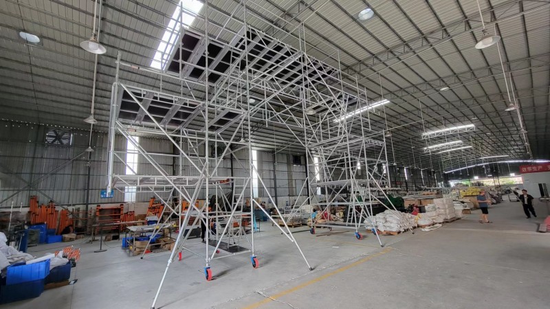 属于脚手架系类产品,由铝合金材料6082-T6型材(又名航天铝型材料)通过加工、技术制造用于各项高空作业平台使用的脚手架系类产 品。常见的铝合金脚手架有焊接框结构铝合金脚手架、盘扣插销式铝合金脚手架、十字分销式铝合金脚手架、单管式铝合金脚手架。