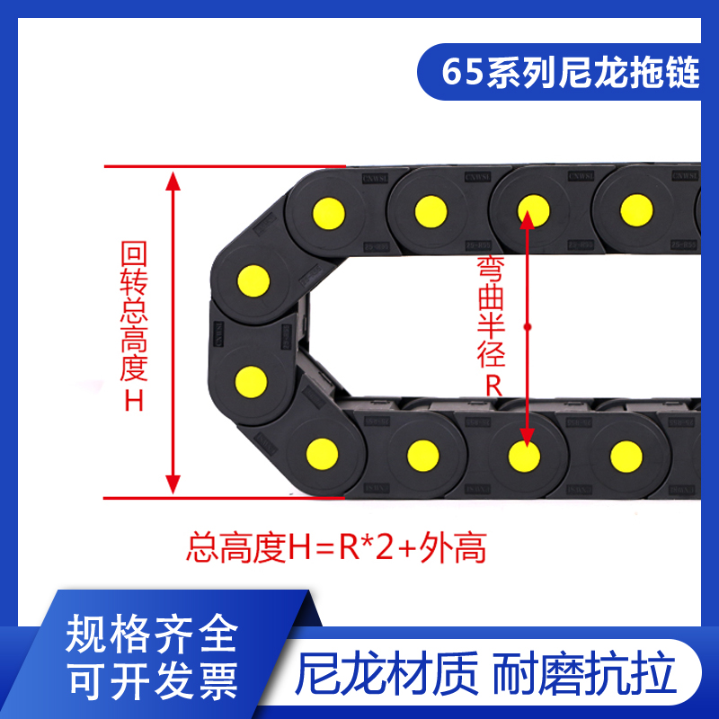 65系列塑料尼龙拖链 全封闭电缆增强高速静音坦克链