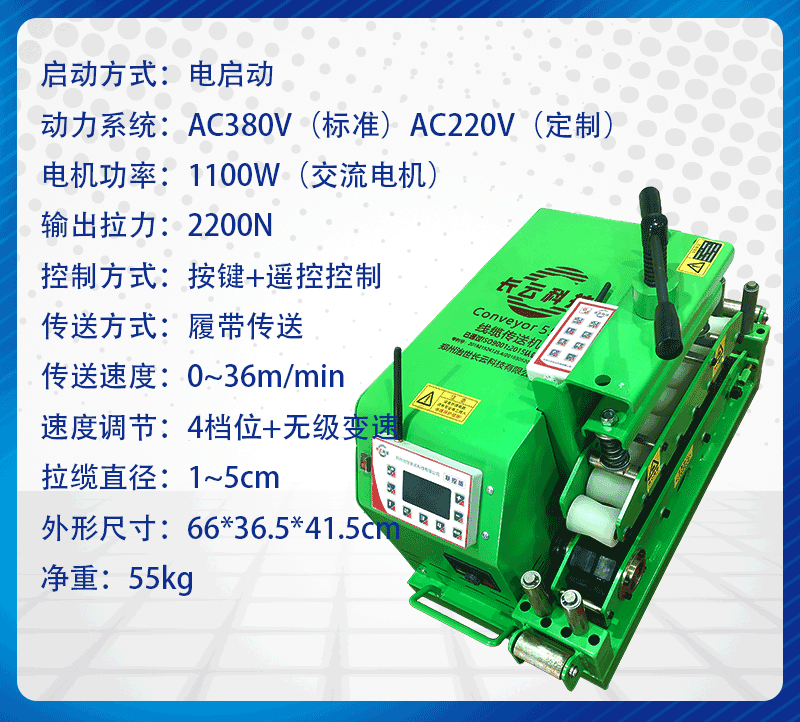 本机结构紧凑、重量轻,体积小,小型高效,方便移动,适合狭小空间长距离的电缆铺设,例如桥架电缆,地铁隧道内电缆,仪器电缆,电器控制线的铺设施工。