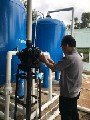 本过滤器采用布水系统及过滤料进行反冲洗、正冲洗,终身使用,且不需要更换耗材,运行等一系列操作。并保证设备的产水质量,运行费用很低。采用两次过滤层的多介质过滤器,主要目的是去除原水中含有的泥沙、浑浊度,铁(Fe2  Fe3)、锰、胶体物质、悬浮物、降低进水浊度及在1μМ以上的颗粒物,填料选用天然优质均匀的过滤材料组成,以保证良好的过滤效果。