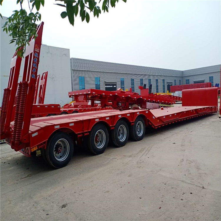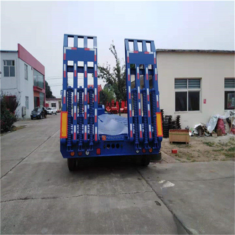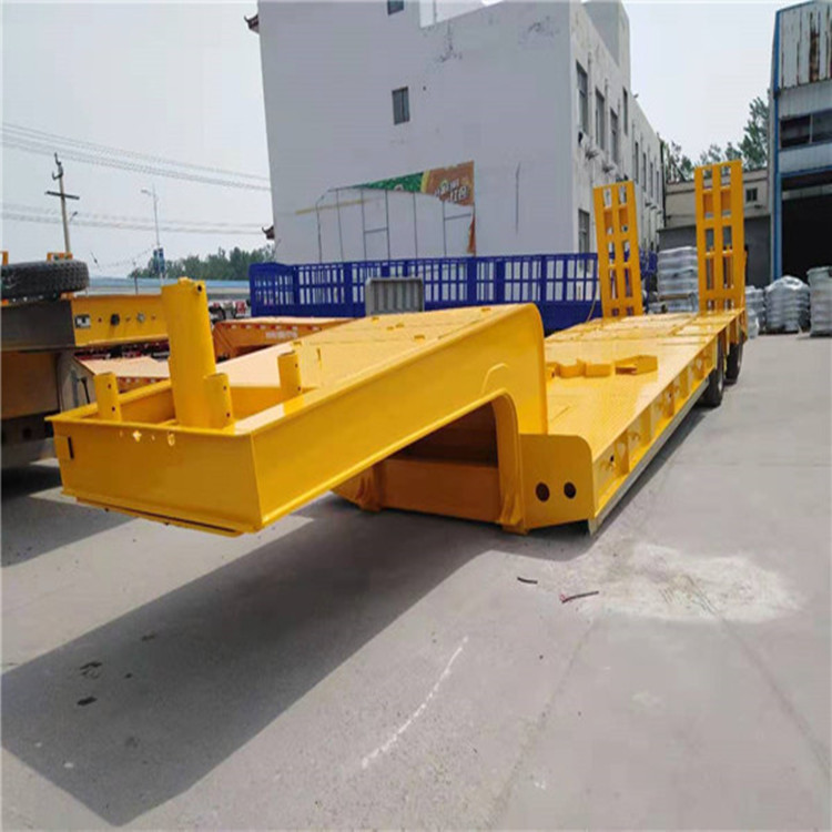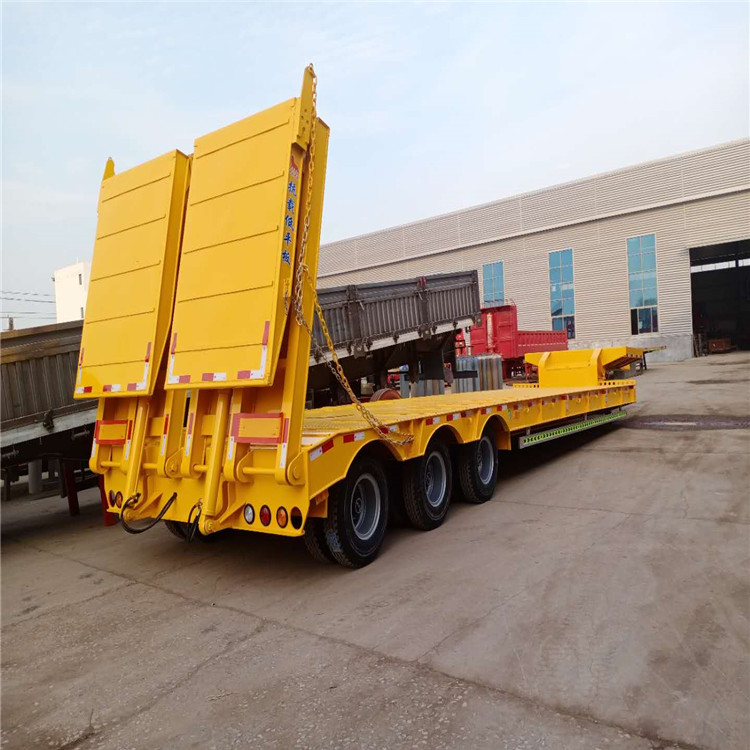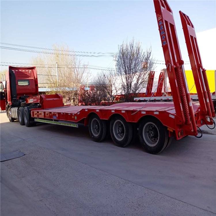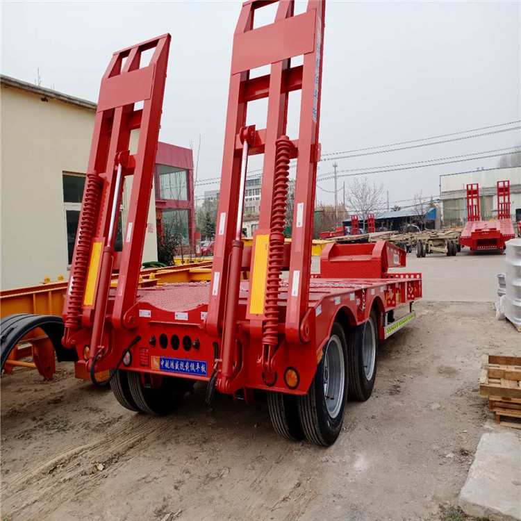 低平板半挂车包括鹅颈式低平板半挂车和特种低平板半挂车系列尺寸有9.5米10.5米11米11.5米12米12.5米13米13.75米 底板平板半挂车,宽度2.8米-3米,款式有高低板,平板式,凹梁式,轮胎外露式,高低高,二轴,三轴,两线四轴高低高,三轴高低高,三线六轴高低高。根据轴数,轮胎的大小,低平板半挂车的载重也是不同的,轴数越多,载重越大,载重范围在20-50吨之间。纵梁采用平直式或鹅颈式,其车架为阶梯型,纵梁截面为工字形,具有刚度高,强度高等特点。 山东鸿盛车业制造 出口型半挂车产品、提供 出口半挂拖车服务、以服务创造出口半挂车打造 、以服务带动营销,对每一个半挂车产品负责,对每一个客户负责。