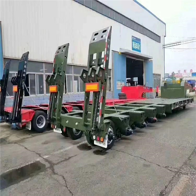 平板半挂车载货,适用于多种机械设备、大型物件、公路建设设备、大件罐体、电站设备机各 种钢材的运输。